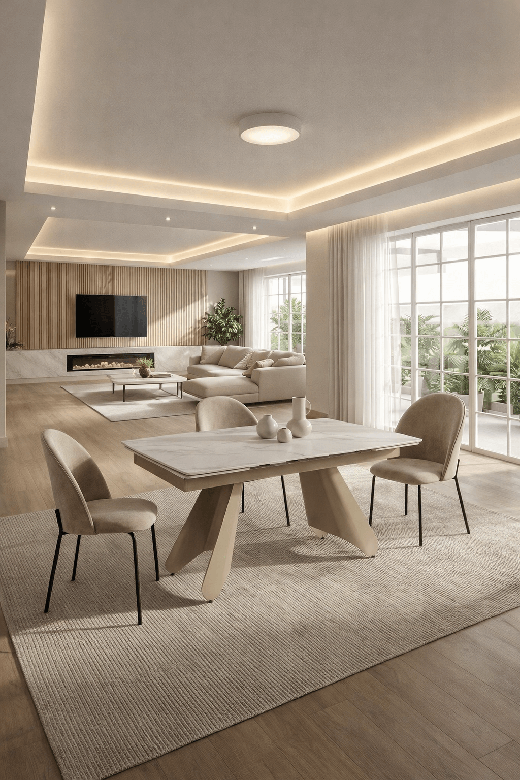 Il Tavolo Royal è l’espressione perfetta di eleganza moderna e funzionalità intelligente. Caratterizzato da una raffinata forma a botte, unisce linee morbide e proporzioni equilibrate, rendendolo ideale per ambienti luminosi e contemporanei.