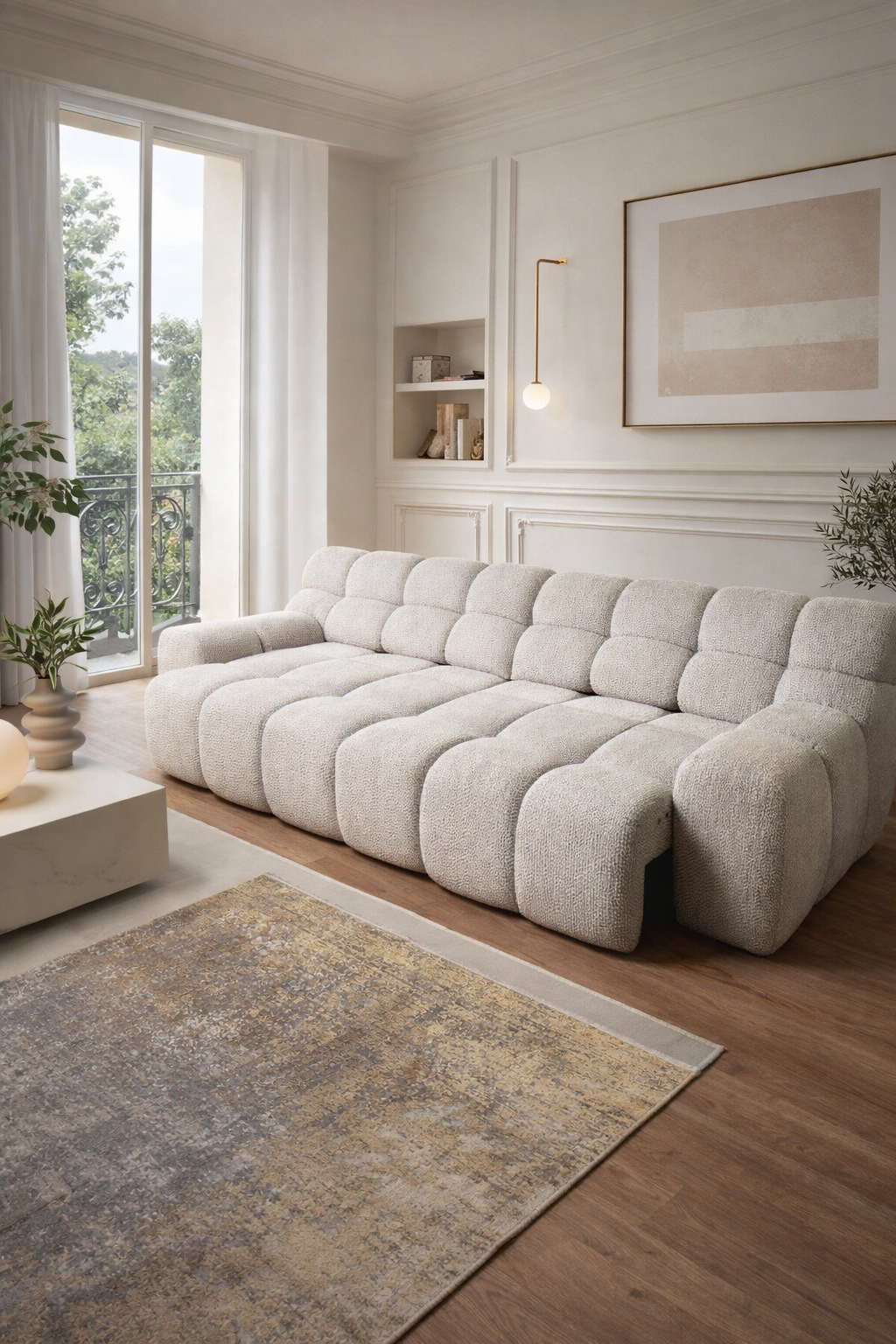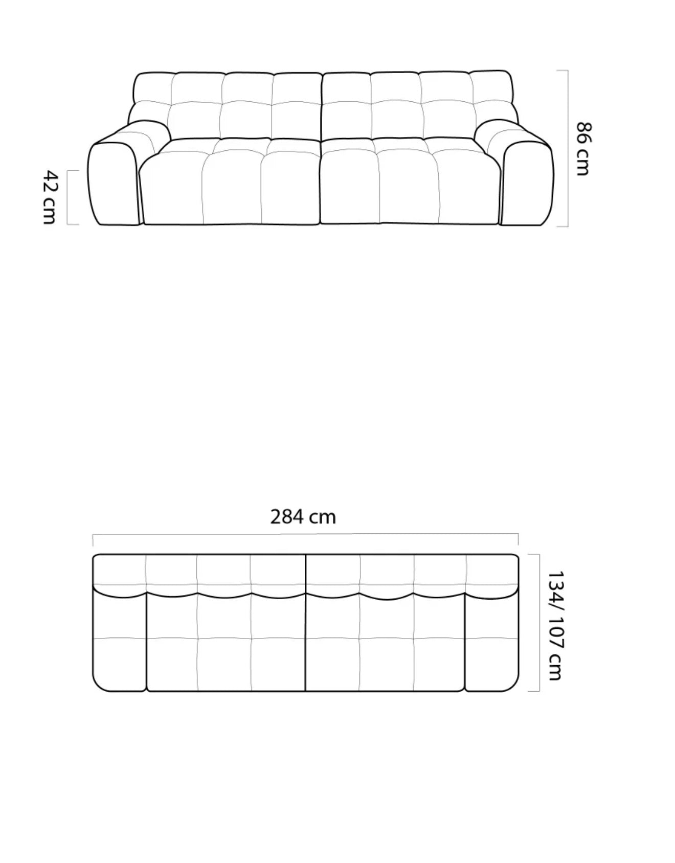Con una larghezza di 280 cm e una profondità di 110 cm (che aumenta con il meccanismo elettrico), questo divano offre una seduta ampia, accogliente e perfettamente bilanciata nelle proporzioni.