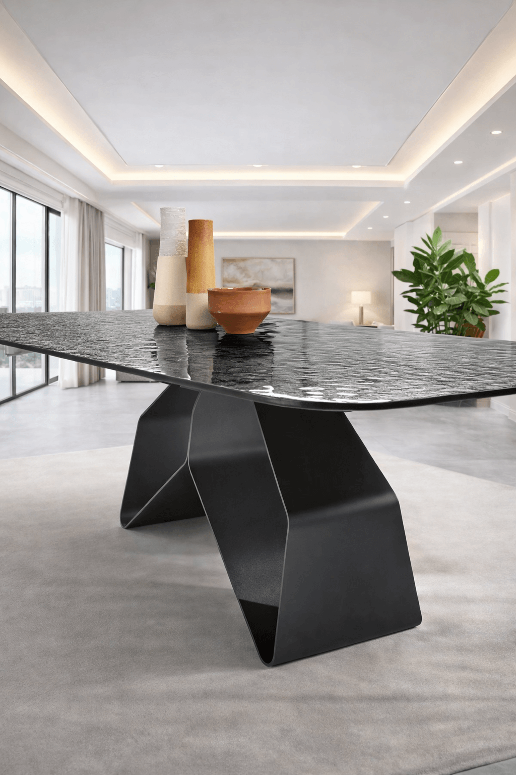 Il Tavolo Swing è un’icona di design contemporaneo, caratterizzato da linee dinamiche e da una base scultorea che diventa protagonista dello spazio. Il suo nome richiama il movimento armonioso della struttura, capace di unire solidità e leggerezza visiva in un equilibrio perfetto.